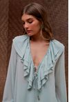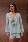 Blusa em georgette fluido. Camadas de babados, micro preguinhas e rolotês. Ótima para compor diversos looks modernos. Os tons pasteis são delicados e estão super em alta.