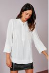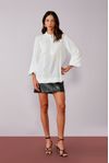 Bata viscose creponada bordada. Detalhe pregas e mini botões forrados.