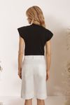Bermuda em crepe premium algodão, poliamida e elastano com ótimo toque e caimento, cintura média e detalhe lapela enfeite bolsos.