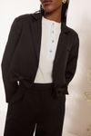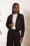 Blazer cropped em crepe de alfaiataria. Detalhe laços que insere toque fashionista ao look.