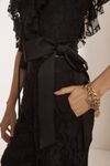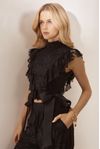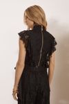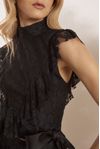 Blusa babado faixa em cetim para laço. Renda la bohème fluida de poliamida e algodão, desenho floral delicado.
