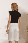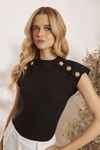 Blusa ombreira e botão dourado tiger que insere modernidade à peça. Malha canelada eco feita a partir de fibras de madeira de reflorestamento.