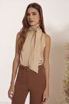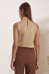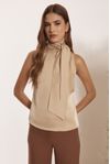 Blusa regata com faixa para laço. Crepe levemente acetinado.