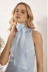 Blusa regata com faixa para laço. Crepe levemente acetinado.