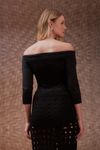 Blusa pala drapeada ombro a ombro. Decote gota e passante bola em banho dourado. Malha eco com leve acetinado feita a partir de fibras de madeira de reflorestamento.