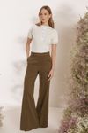 Blusa malha canelada, pate em tricoline. Botões personalizados e manga bufante.