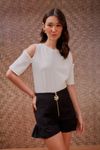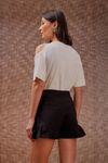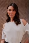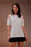 T-shirt em meia malha. Vazado ombros, cava deslocada. Perfeita para compor com as mais diversas peças.