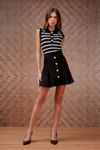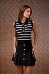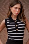 Blusa tricot listrado. Botões lion em banho dourado que valorizam à peça. Modelagem ótima, comfy e com informação de moda.