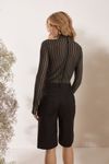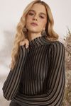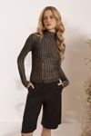 Blusa tricot listras bicolor intarsia. Manga longa e gola levemente alta.