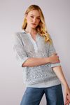 Blusão de tricô com gola polo rendado, uma peça cool e cheia de personalidade.