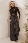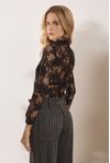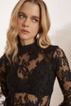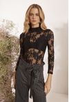 Body manga longa e top underwear. Renda la Bohème fluida de poliamida e algodão, desenho floral delicado.