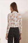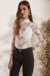 Body manga longa e top underwear. Renda la Bohème fluida de poliamida e algodão, desenho floral delicado.