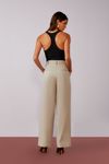 Calça cintura média, pregas e modelagem reta. Tecido alfaiataria algodão premium.
