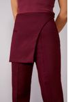 Calça sarja de algodão com efeito gorgurão. Cintura alta, wide leg. Opção de sobreposição assimétrica. Peça super moderna para estação.
