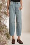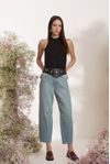 Calça jeans100% algodão, lavagem destroyer clara. Cintura alta, modelagem barrel e detalhe pences joelhos. Invista nessa modelagem tendência para um look super cool.