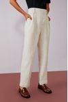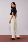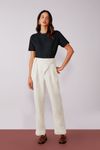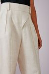 Calça reta cintura média. Pregas e nervura. Abotoamento assimétrico, moderno que traz informação de moda e toque único ao look. Feita em linho puro. Linhos são frescos, rústicos e insere visual mais sofisticado.