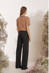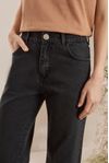 Calça cintura média black jeans stonado. Modelagem reta, tradicional, que funciona em diversas produções. Detalhe plaquinha personalizada LITT.