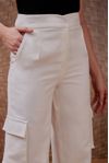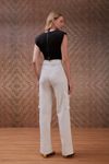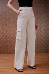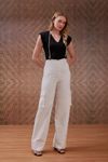 Calça cintura alta wide leg. Bolsos folly, detalhe suspensório pérolas, podendo usar com ou sem. Feito em algodão caimento estruturado e visual rústico, que utiliza menos água e emite menos CO²