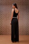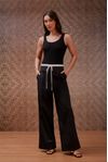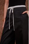 Calça em sarja cintura média wide leg nervura. Detalhe cós sobreposição em tricoline com rolotê. Peça super moderna que insere visual esportivo ao look.