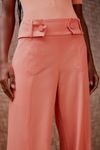Calça wide leg cintura média em crepe. Alhetas, recortes e botões forrados que valorizam.