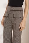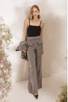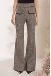 Calça wide leg cintura alta nervura. Lapelas e cós com vivo alfaiataria black. Tecido algodão mesclado aspecto flanelado, fios tintos em desenho xadrez nano.