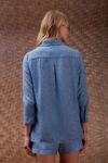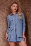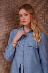 Camisa tecido efeito melange, fios mesclados, tipo anarruga. Detalhe super moderno, pate desconstruído com abertura. Bolsos e botões forrados. É uma peça que pode ser usada de diferentes formas, com modelagem autêntica.