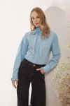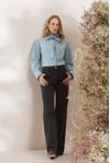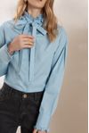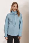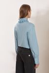 Camisa gola alta com babado e faixa para amarrar. Pate embutido. Feita em tricoline com elastano. Peça perfeita para compor produções sofisticadas e femininas.