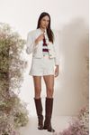 Casaco crepe alfaiataria premium, algodão, poliamida e elastano. Detalhes vivos, lapelas e botões waffle em banho ouro.