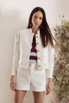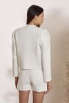 Casaco crepe alfaiataria premium, algodão, poliamida e elastano. Detalhes vivos, lapelas e botões waffle em banho ouro.