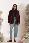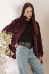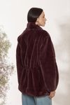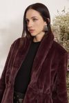 Casaco gola e cós elástico embutido. Detalhe ganchos cintura. Pêlo fake de poliéster em tom cacau. Invista para produções sofisticadas em dias mais frios.