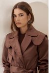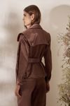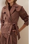 Casaco modelagem perfecto, over, com faixa para amarrar. Detalhe sobreposição abas. Algodão com toque paper e visual acetinado.