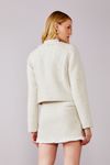Casaqueto em tecido tipo tweed mesclado e visual rústico. Detalhes micros frufrus tricoline e lapelas. Botão efeito madrepérola, resina marmorizada.