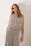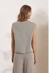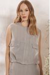 Colete modelagem over, com leve balonê e pregas. Zíper metal frontal embutido e lapelas botões pressão forrados. Peça super cool para looks inspiradores. Alfaiataria poliéster com elastano padrão espinha de peixe.