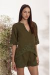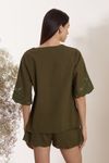 Conjunto blusa soltinha decote v. Short cintura média com elástico. Bordado Richelieu ton sur ton que insere visual único à peça.