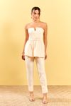 Conjunto calça cigarrete cintura alta com nervura. Blusa corset, pence e basque. Feito em crepe estruturado premium, com ótimo toque e caimento.
