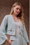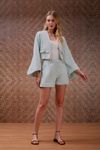 Conjunto casaco cropped e manga sino. Short cintura alta alfaitaria e barra italiana. Detalhes de argolas em banho de ouro personalizado. Crepe com elastano e ótimo caimento .