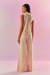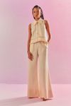 Calça tipo pantalona cintura alta e cós de elástico. Blusa tipo bata evasê. Detalhes de micro babadinhos e rendinhas. É um conjunto super prático em tecido leve, comfy e estiloso.