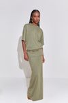 Conjunto da linha back to basics. Saia cintura média shape reto. Blusa tshirt modelagem over. Malha leve, fluida, mesclada com visual rústico e caimento perfeito. Invista em peças atemporais e super comfy.