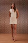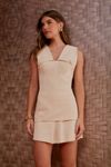 Conjunto crepe gola estilo navy com botão duplo forrado. Short saia pregas. Os tons pasteis estão em alta na temporada, é um conjunto fresh e super jovem.