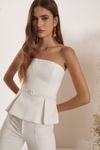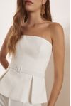 Blusa corset e basque pregas. Detalhe cinto forrado. Feito em algodão caimento estruturado e visual rústico, que utiliza menos água e emite menos CO².