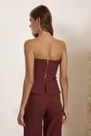 Blusa corset e basque pregas. Detalhe cinto forrado. Feito em algodão caimento estruturado e visual rústico, que utiliza menos água e emite menos CO².