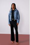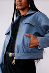 Jaqueta boy moderna, bolsos e lapelas, recortes diferenciados e zíper metal. Tecido ecológico feito a partir da desfibragem de diversas fibras descartadas. Além disso, possui película laminada que fornece visual moderno e com brilho à peça.