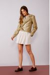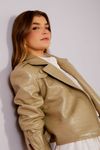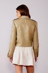 Jaqueta perfecto com fivela lateral. Bolso irregular. Poliuretano com textura croco, toque macio e super moderno.