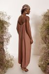 Macacão pregas modelagem harem. Tecido tipo cupro de viscose e poliéster com toque peletizado e caimento impecável.