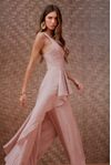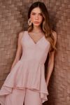 Macacão crepe de viscose com aspecto levemente irregular. Babados em cauda com movimento único. Peça muito chique, perfeita para diversos momentos especiais.