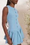 Macaquinho tipo vestido balonê. Cintura ajustada, botões bombês. Tecido crepe com elastano.