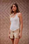 Regata malha canelada. Barra acabamento arredondado tipo corset. As básicas ganham destaque para compor looks inusitados.