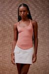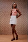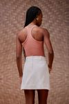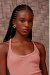 Regata malha canelada. Barra acabamento arredondado tipo corset. As básicas ganham destaque para compor looks inusitados.