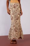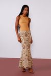 Saia midi modelagem sereia, cintura média. Tecido renda guipir com couro poliuretano.