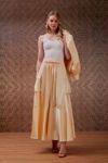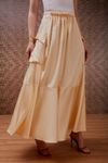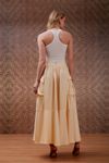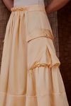 Saia midi godê cintura alta. Feita em crepe de viscose acetinado. Detalhe franzidos e micro babadinhos, bolsos utilitários com botões forrados. Peça com muita informação de moda, visual autêntico e fashionista.